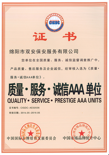 質(zhì)量、服務(wù)、誠信AAA單位證書
